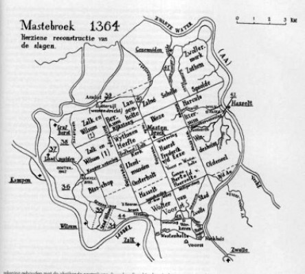Reeds in het jaar 1364 liet Jan van Arkel, bisschop van Utrecht, onder opzicht van zijn landmeter Hendrik Stouwen, door de boeren uit den omtrek den ringdijk van Mastenbroek opwerken, die wel niet dadelijk de hoogte en kolossale dikte van thans zal hebben gehad; in het volgend jaar werden de weteringen gegraven, die den polder toen al in vele van de tegenwoordige blokken verdeelden. Mastenbroek had toen al enkele goede, hoogere grasgronden en bestond verder uit boschachtige streken , waarvan de namen Westenholte en Oosterholt herinneren, veenplassen, moerassen en meren. In 1597 werden bij Hasselt, Genemuiden, Kamperzeedijk (veeneriete) en Kampen vier grote watermolens gebouwd. Deze werden evenwel in 1650 weer verkocht, vermoedelijk omdat de bedienaren ervan, die door de gunstige omstandigheden wel visschers moesten worden, als ze het al niet waren, meer hun eigen belang dan dat van de polder voorstonden, naar verluid word lieten ze ter bevordering hunner vischvangst vaak s’nachts zooveel mogelijk van het water weer binnenstromen dat ze daags hadden uitgemalen.