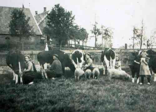 In de tweede klas op school ging je leren melken. In het voorjaar als de koeien van stal naar buiten gingen mocht je ’s avonds leren melken op de boerderij. Op de knieën of op de hurken, wat je zelf het makkelijkst vond.