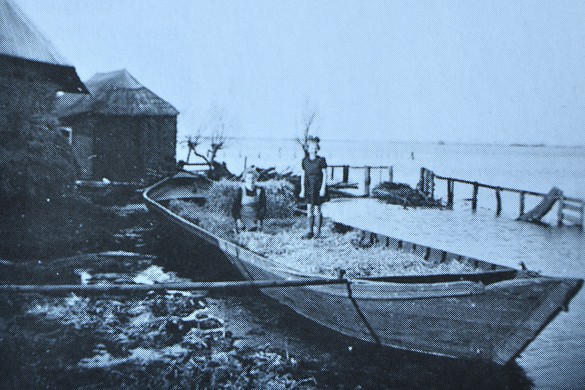 “Wanneer krijgen we het stro nou en hoe krijgen we het bij ons huis,” vraagt Klaas. “We kunnen het immers niet met paard en wagen halen omdat de weg onder water staat.” “Ze komen het deze week nog brengen met de bok,” zegt zijn vader. En dat klopt, een paar dagen later komt er een boot de oude Wetering opvaren en wordt het stro keurig afgeleverd.